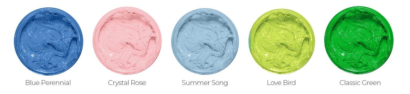If your branding is a little less trendy and a little more classic, this third and final palette might be the right fit for you. Aptly named, the Utility Palette includes the tried and true shades of Blue Perennial, Crystal Rose, Summer Song, Love Bird and Classic Green. Each tone, while not over the top or bold, complements the others for a spring look suitable for any brand.